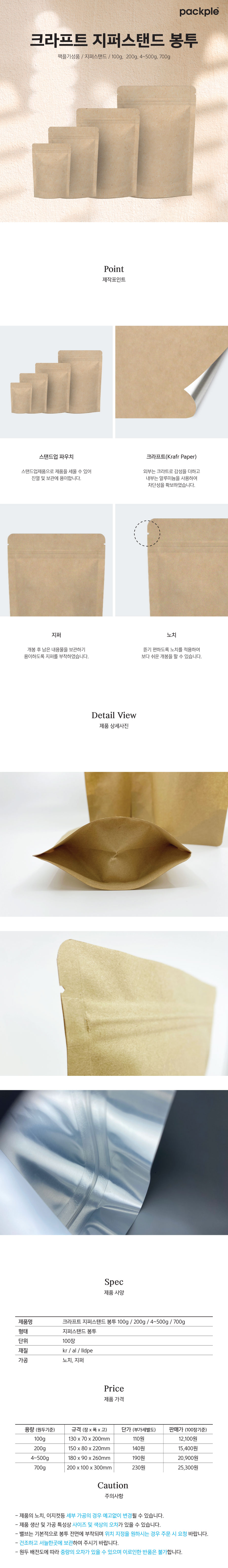 크라프트 지퍼스탠드 봉투 100g / 200g / 4~500g / 700g